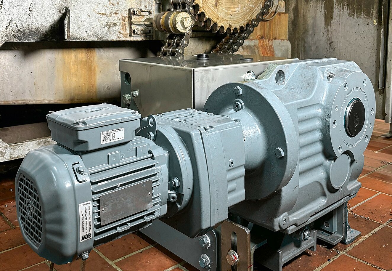 Bei einer Anlagenbegehung vor Ort verschaffte sich das Retrofitteam von SEW-Eurodrive einen Überblick über die Gegebenheiten. Dem Kunden wurde eine technische Lösung angeboten mit einem neuen Doppelgetriebemotor samt aller erforderlicher Adaptionen zur Anbindung an die vorhandene Anlage. Die Lösung überzeugte durch ein maßgeschneidertes Antriebspaket nach dem aktuellen Stand der Technik, einschließlich der Einbauerklärung und gesicherter Ersatzteilverfügbarkeit. Sie war kostengünstiger als die Generalüberholung der Originalantriebe.