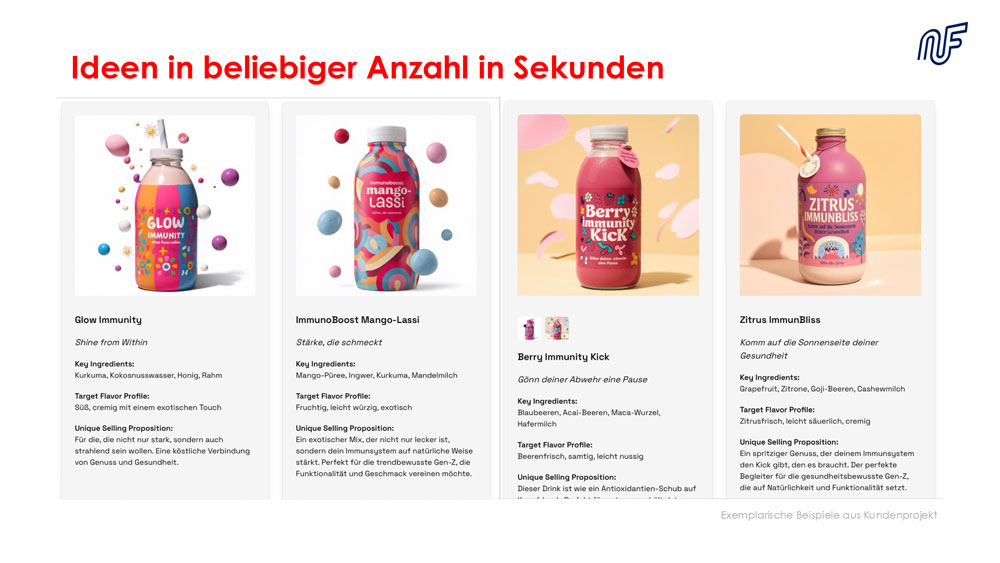 Die Lebensmittelbranche steht unter hohem Innovationsdruck, doch ein Großteil neuer Produkte scheitert am Markt. Der kombinierte Ansatz aus KI-gestützter Trenderkennung, schneller Konzeptentwicklung, passgenauer Ingredient-Auswahl und frühzeitigem Konsumententest erhöht die Relevanz für Zielgruppen und reduziert Iterationsschleifen in der Produktentwicklung.