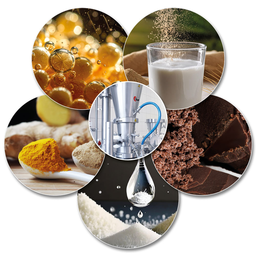 Schwierig lösbare Kollagene und Proteine oder instantisierte Lebensmittel erhalten durch kombinierte Sprühgranulation und Sprühagglomeration eine kompakte, aber poröse Struktur mit verbesserter Löslichkeit. Einfache Sprühtrocknungsprodukte oder Flüssigkeiten werden durch Sprühagglomeration zu staubfreien, frei fließenden Granulaten, die beim Lösen problemlos benetzen und einsinken ohne zu verklumpen. Mittels Coating oder Mikroverkapselung können flüchtige oder empfindliche Inhaltsstoffe wie Aromen, Vitamine, essenzielle Fettsäuren oder Mikronährstoffe gleichermaßen geschützt und gezielt freigesetzt werden.