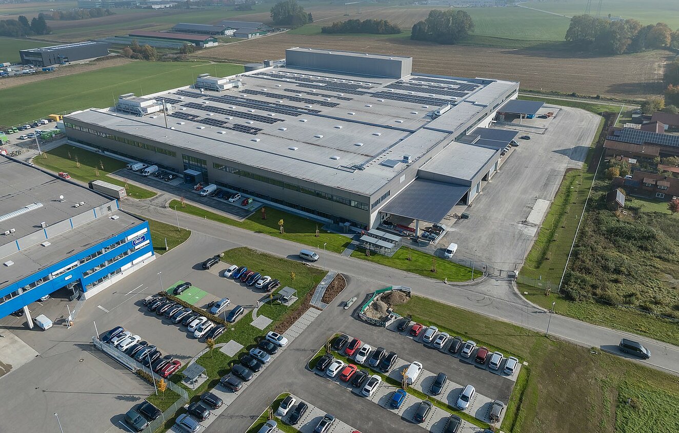 Auf 27.500 Quadratmetern Gesamtfläche ist ein hochmodernes Werk entstanden, das die Zukunft der automatisierten Fertigung und Ersatzteilversorgung bereits heute abbildet. Rund 60 Millionen Euro flossen in das Gebäude, weitere 40 Millionen Euro in Technik und Prozesse. Um seiner Nachhaltigkeitsstrategie gerecht zu werden, setzt das Unternehmen auch am neuen Produktionsstandort auf Maßnahmen zur Reduzierung der Treibhausgasemissionen. Grundwasser zur Gebäudekühlung, Heizsysteme mit Geothermie, Bio-Fernwärme sowie eine firmeneigene Photovoltaik-Anlage ermöglichen eine völlig klimaneutrale Energieversorgung des Werks.